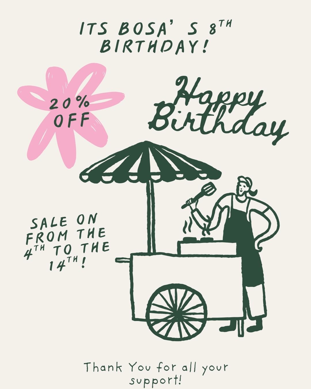 Bosa Art Co is 8 years old!!!!! It has been such a great roller coaster ride! I am hoping it will last for many more years to come! To thank you for your support I am offering a 20% off discount until the 14th of Feb! Valentine's Day! Thank you so much, Love Sarah!