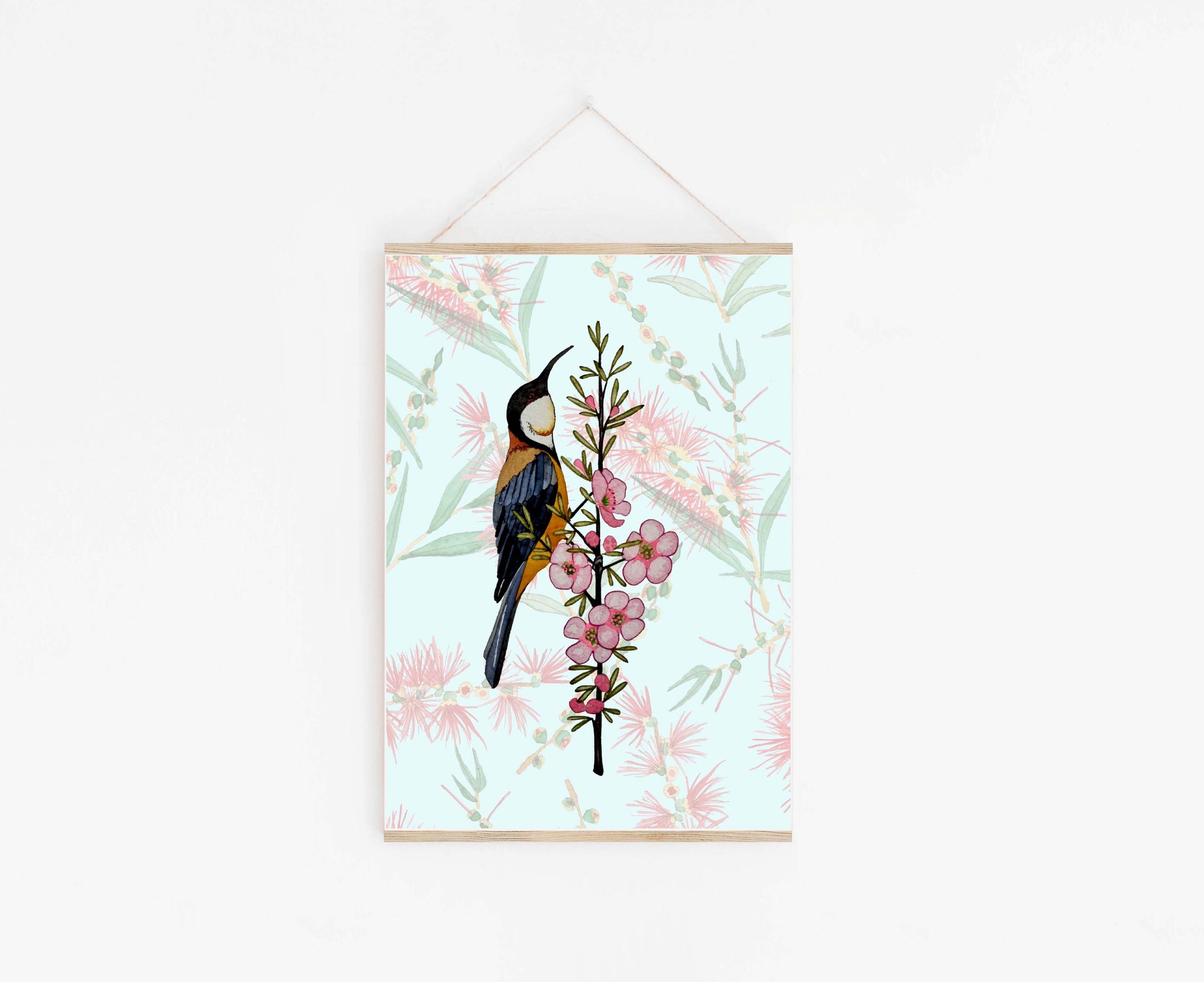Art Print - Spinebill Honey Eater and Manuka -A5