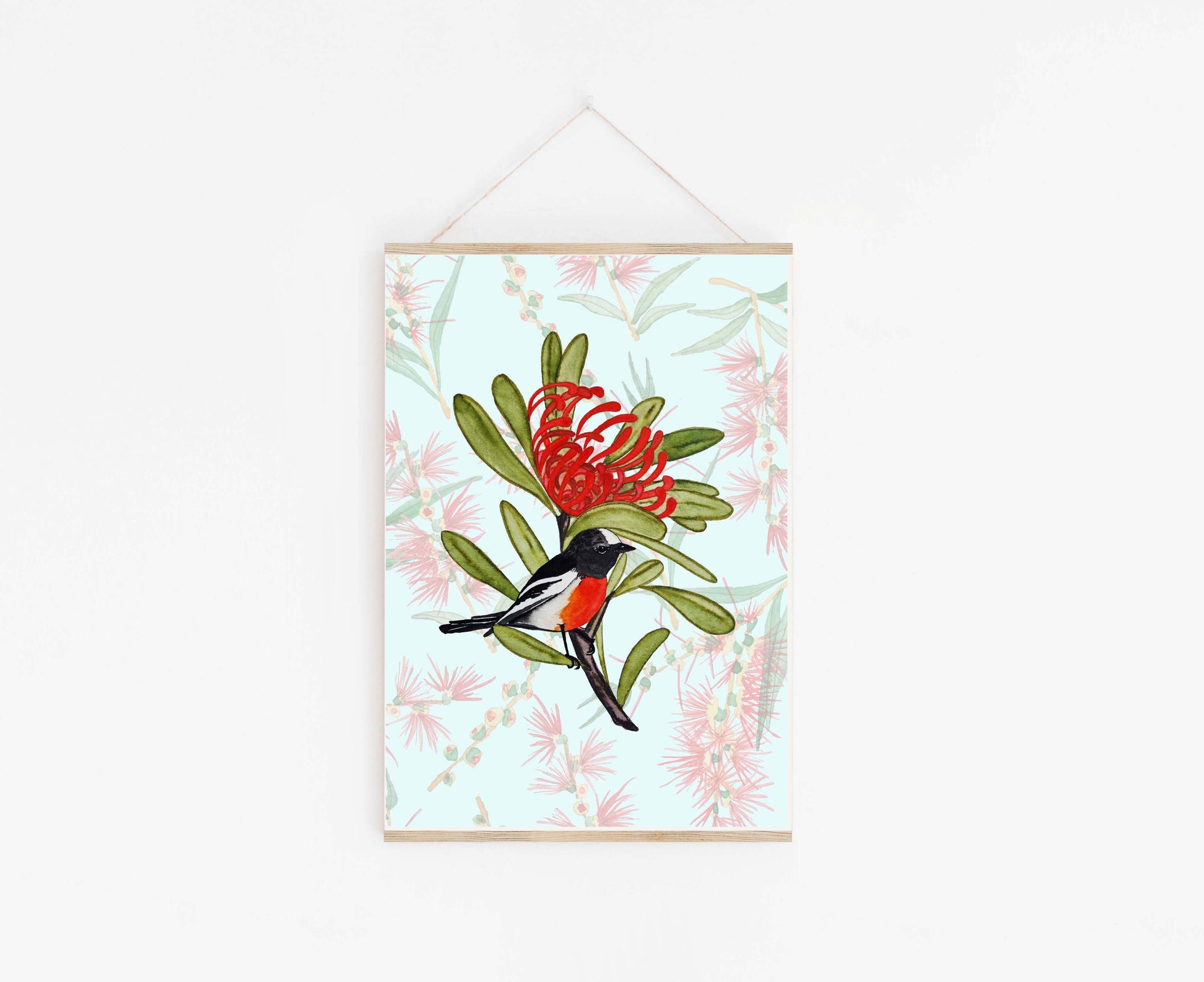 Art Print - Waratah and Scarlet Robin -A5