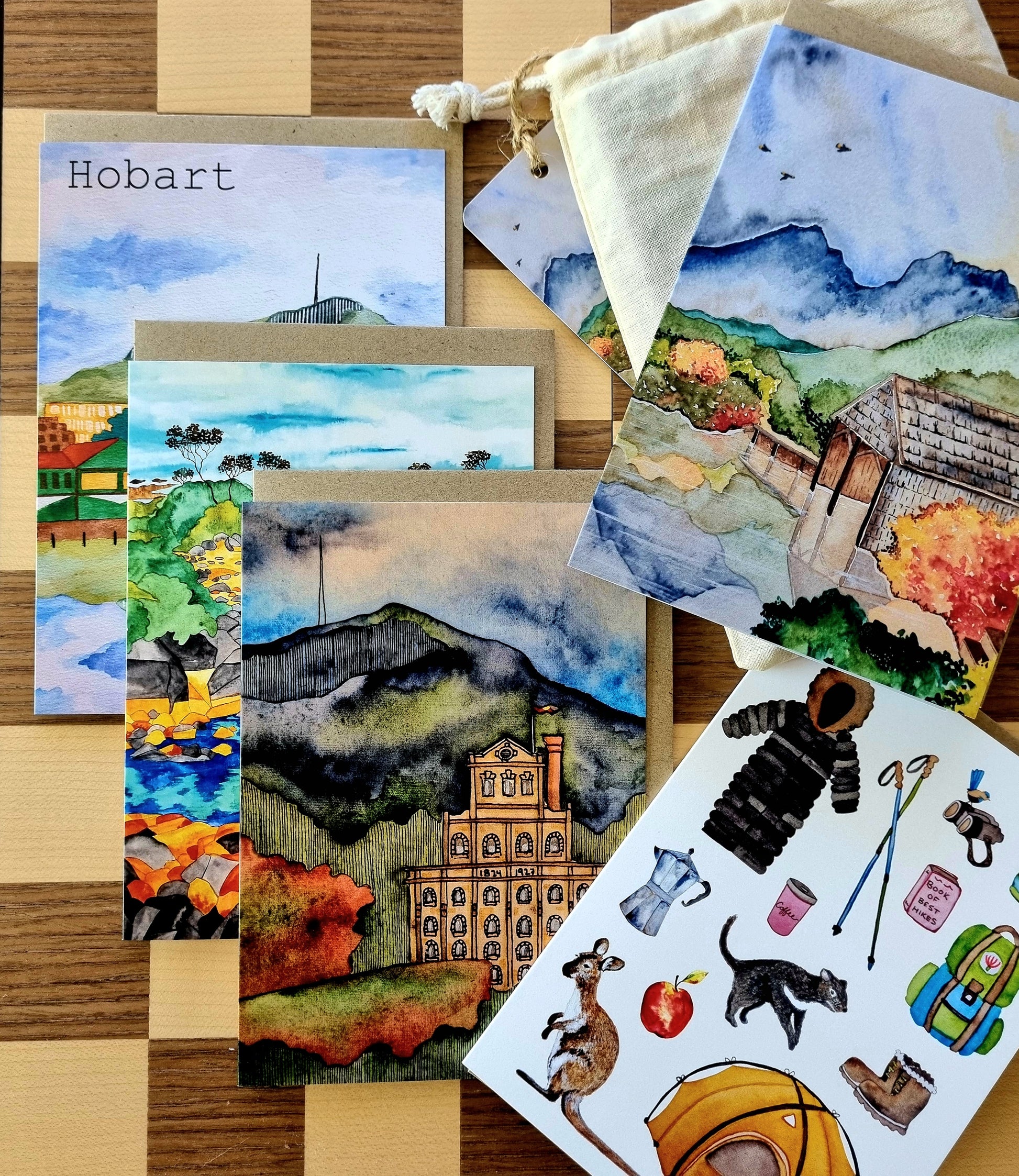 By choosing this bundle, you save and support a Tasmanian artist — and share the beauty of our wild, creative island with the world.