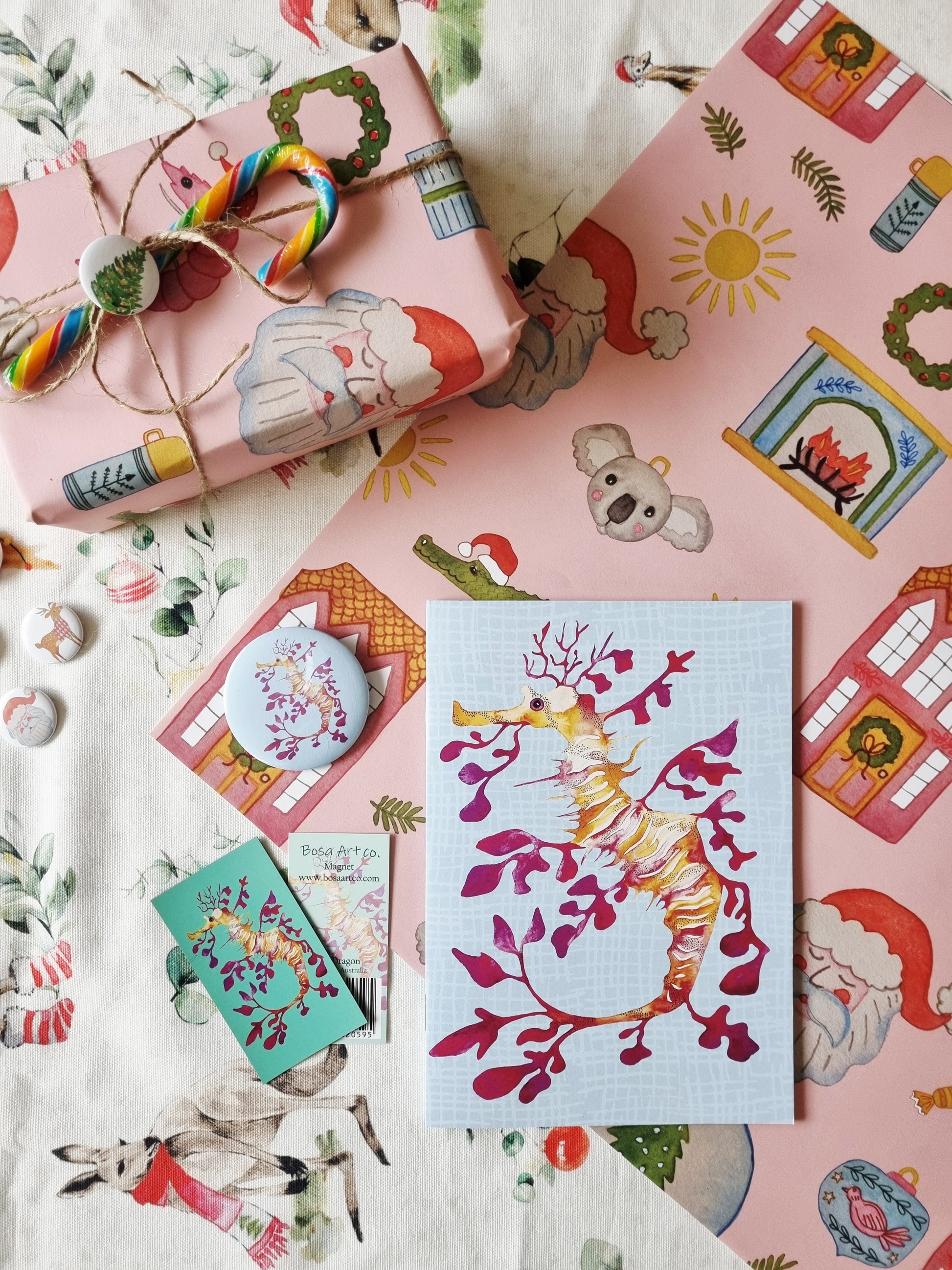 Each bundle will be under $30, beautifully gift-wrapped in Bosa Art Co wrapping paper, tied with string, and finished with a cute Christmas button.